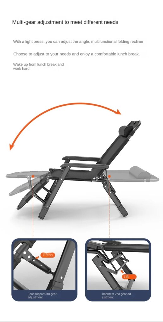 The built-in cushion headrest, breathable fabric, and flexible design ensure that your neck, back, and legs feel supportedâno stiffness or strain.